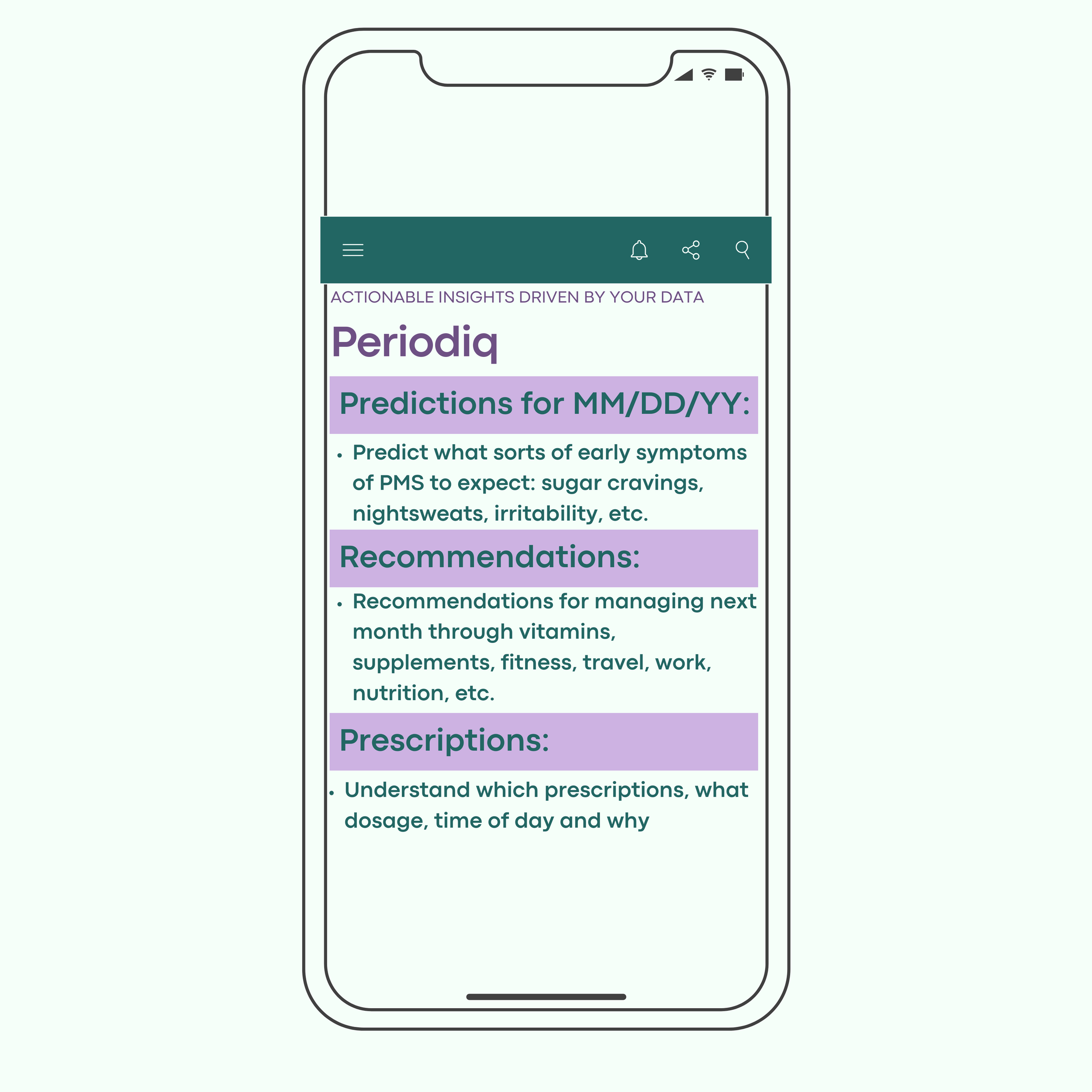 Periodiq™ is the first predictive platform that uses the hormone cycle as a vital sign for personalized medicine and improved outcomes The Periodiq™ mobile app offers daily, predictive, personalized menstrual support that takes the mental load away Sign up for the our Beta release! Sign Up